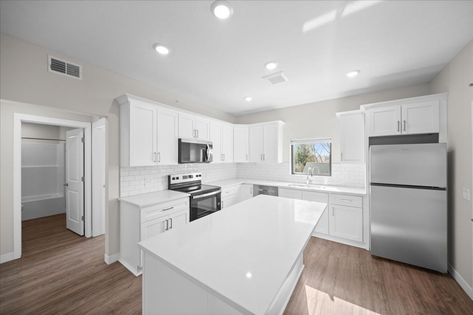 Welcome home to this brand-new 2-bedroom, 2-bathroom apartment designed with modern living in mind. Enjoy a bright open -concept floor plan, in-unit laundry, a one-stall detached garage and additional on-site parking for everyday convenience. Thoughtfully finished with clean lines and contemporary touches, this home offers a cozy yet modern feel that's perfect for relaxing or entertaining. This building is set back from the busy road and traffic, which allows for a quieter setting. Pet-friendly and move-in ready - this is comfort, style, and functionality all in one place. Be the first to call!